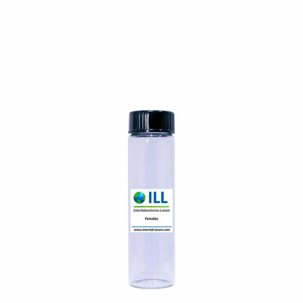 Vial de vidrio que contiene una muestra de 40 ML de agua fortificada con fenoles.